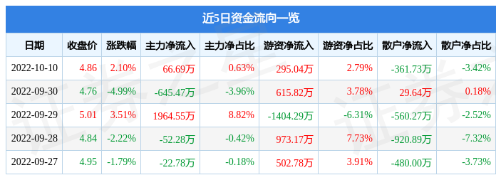 资金流向数据方面,10月10日主力资金净流入66.69万元,游资资金净流入295.04万元,散户资金净流出361.73万元。