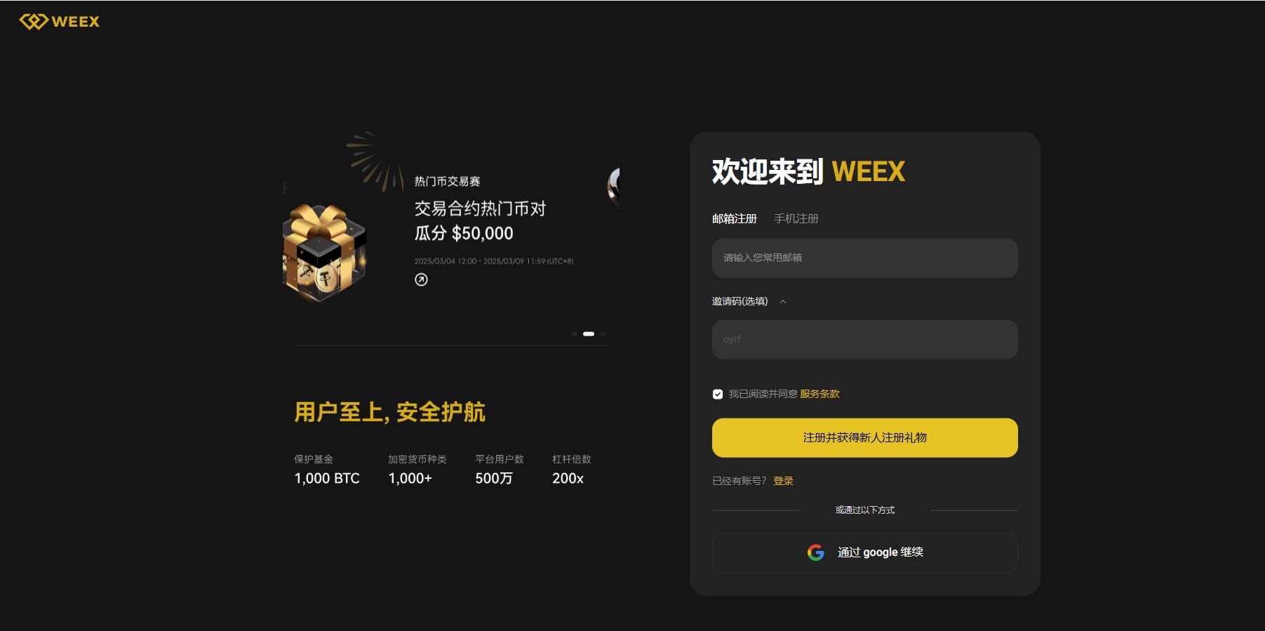 Weex 是一家无需 KYC 的加密货币交易所,特别适合寻求高杠杆交易的用户。该平台提供高达 200 倍的杠杆选项,支持多种主流加密货币的永续合约交易。Weex 的现货交易免手续费,期货交易的费用也极具竞争力。平台支持多种加密货币,包括 BTC、ETH、LTC 等,满足用户的多样化交易需求。尤其对于新用户来说,现在注册还能获得专属奖励! 绑定手机号和邮箱即可领取 20 美元 USDT,完成 KYC 认证还可再得 10 美元 USDT!