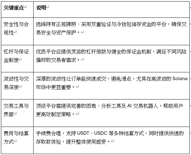 2025年最佳Solana期貨平台评估标准