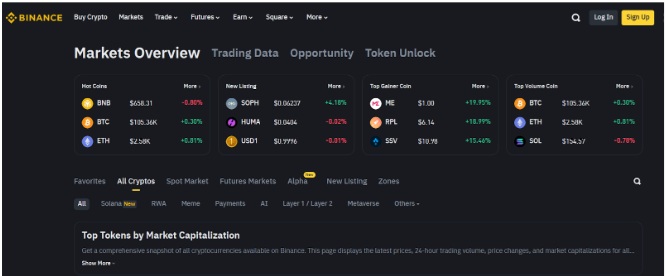 5. Binance — 全球交易量最大Solana期货交易之一,为期货交易提供深度流动性。