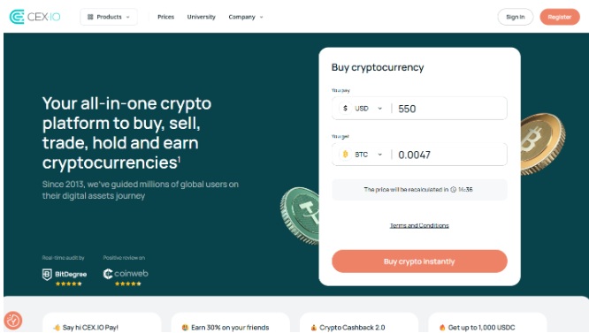 CEX是一个全球知名的加密货币交易所,自 2013 年在英国伦敦成立,提供包括买卖、借贷、存赚及期货交易等丰富功能,是一个对新手与进阶用户都非常友善的平台 (BitDegree)。