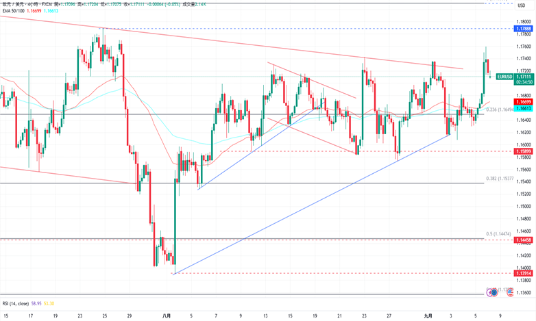 周五,欧元/美元上涨至1.17175美元。美国方面,美国8月非农就业人口仅增加2.2万人,远低于市场预期的7.5万人,也低于7月上修后的7.9万人。大幅弱于预期的非农数据凸显劳动力市场疲软,并进一步加强市场对美联储9月降息的押注。欧元区方面,2025年第二季度GDP季增0.1%,符合预期并与上一季持平;年率修正值则成长1.5%,高于前值和预期的1.4%。展望新的一周,市场将关注美国8月CPI与密歇根大学消费者信心指数初值。欧元区方面,周一将公布德国7月季调后工业产出月率,以及欧元区9月Sentix投资者信心指数。