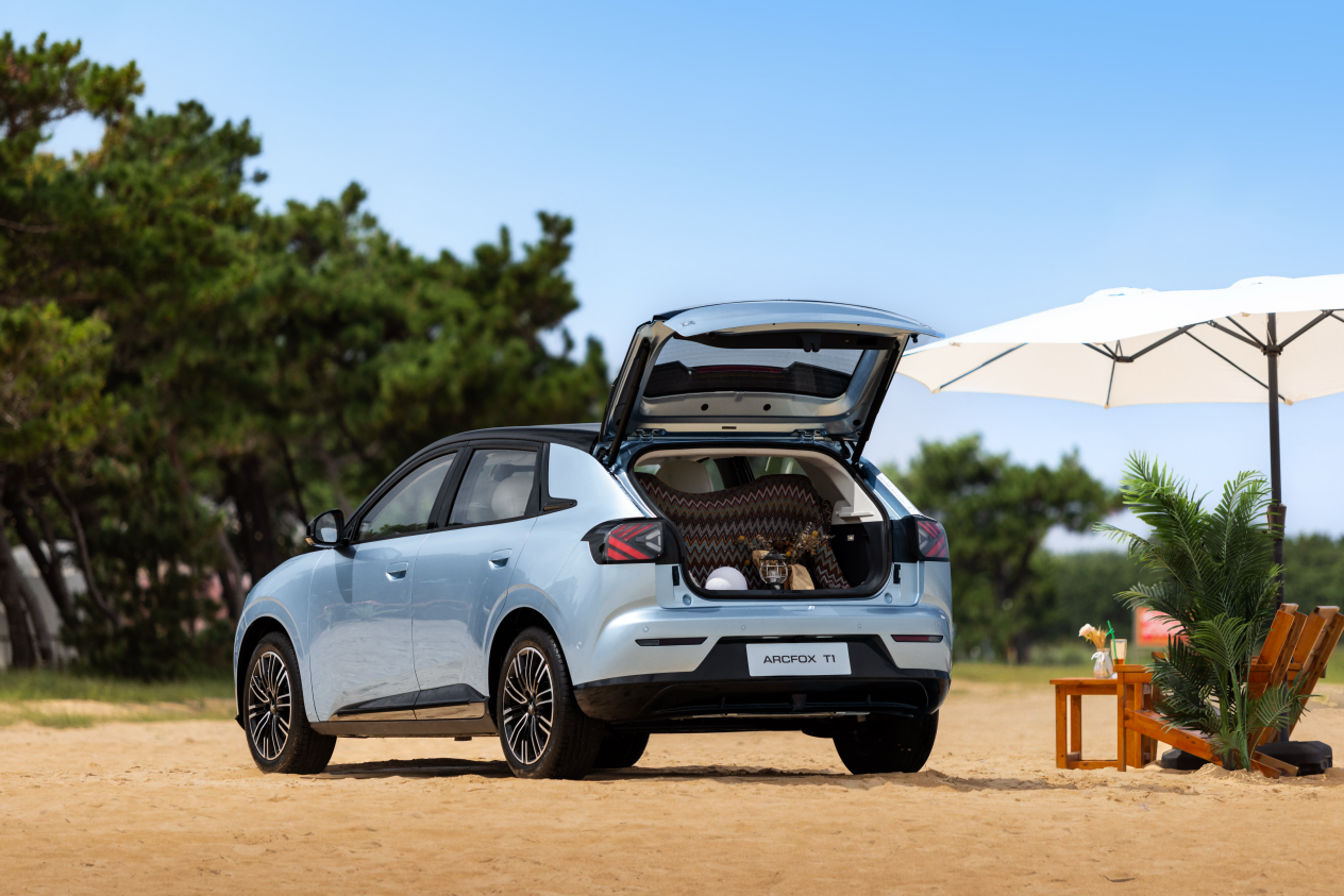 后备厢装载能力也堪称惊艳,在坐满5人的前提下,T1还能轻松放下8个登机箱。如果把后排放倒,最大1352升装载空间,能放下2.7米鱼竿+帐篷+折叠桌椅,周末出行City Drive连猫窝狗笼都有地儿放。这样富有创造力的“空间大师”,试问哪个热爱生活的年轻人能够抗拒极狐T1的精致关爱?