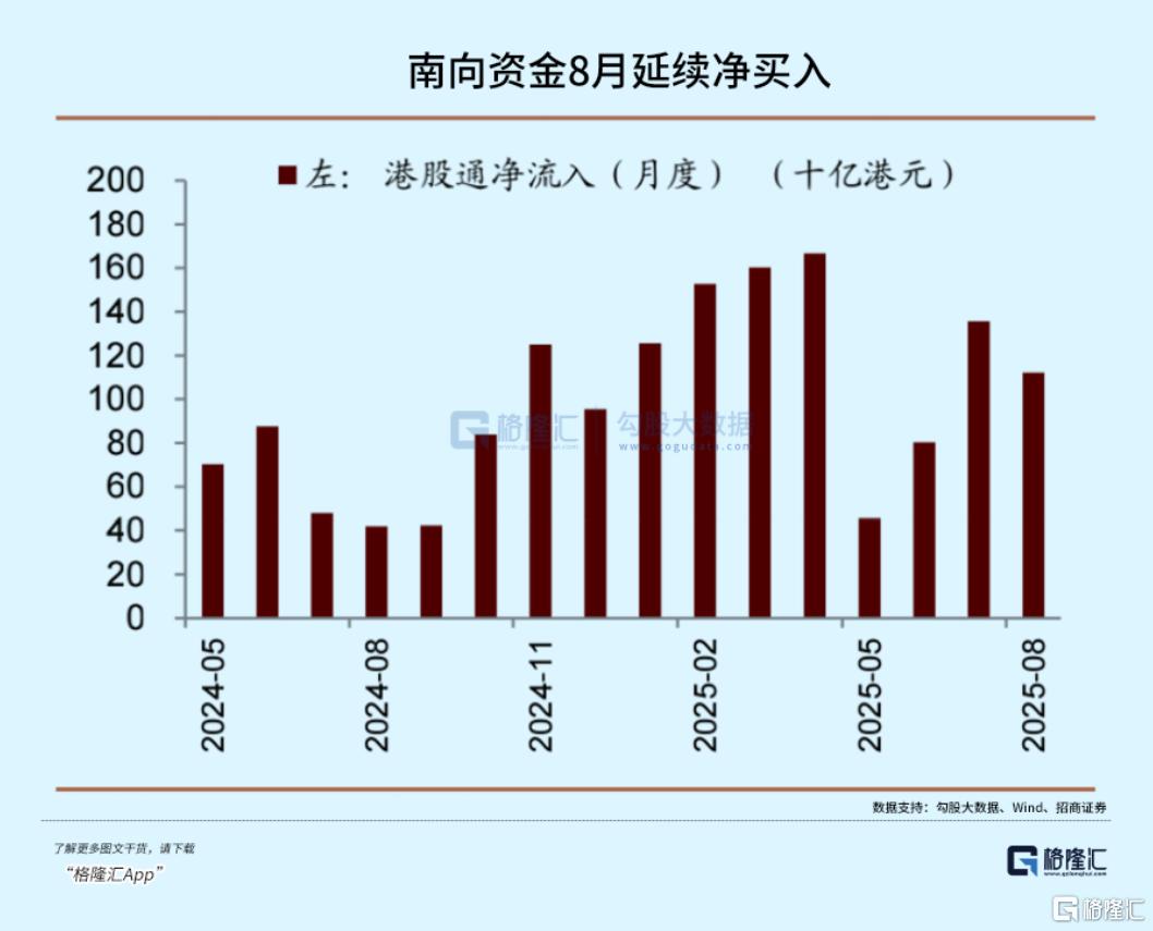 截至2025年9月9日,南向资金年内净流入额达1.04万亿港元,在港股中的成交比例已升至30%左右。外资的回流意愿也在增强,8月外资净增持4.77亿美元,去年924至今合计净流入110亿美元。