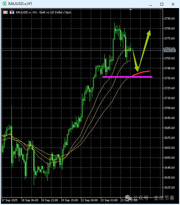 一句话看懂黄金Gold:连涨之后短线进入回调,3736为局部主要依托,决定回调幅度是否加大。