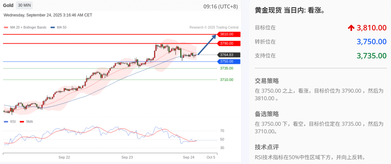 在 3750.00 之上,看涨,目标价位为 3790.00 ,然后为 3810.00 。