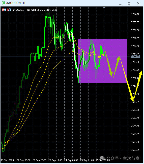 一句话看懂黄金Gold:局部水平区间形成,这是大涨后的正常休整,不影响中长期涨势延续。