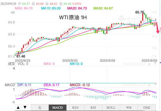 原油短线(1H)走势连续上涨创新高,触及65.80附近遇到强阻力下落,形成主主交替节奏。油价下穿均线系统,短线客观趋势在转换期。从动能交替看,主观趋势向下。关注日内下行力度及连续性,预计日内原油仍存在一波下行空间。