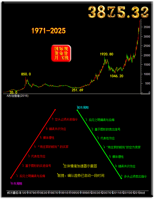秉持市场不可测理论已小有几年,故近年从未发表中期目标预测。高盛关于金价的预测,也从1600美元附近一路上调至2000美元以上,这样的预测有什么意义呢?典型更缺情智二商的投资者只会记住:你预测过金价会到**某某美元。当你如此参考索罗斯给出的目标而哀怨喷粪时,索罗斯或早已调转枪头赚钱了。
