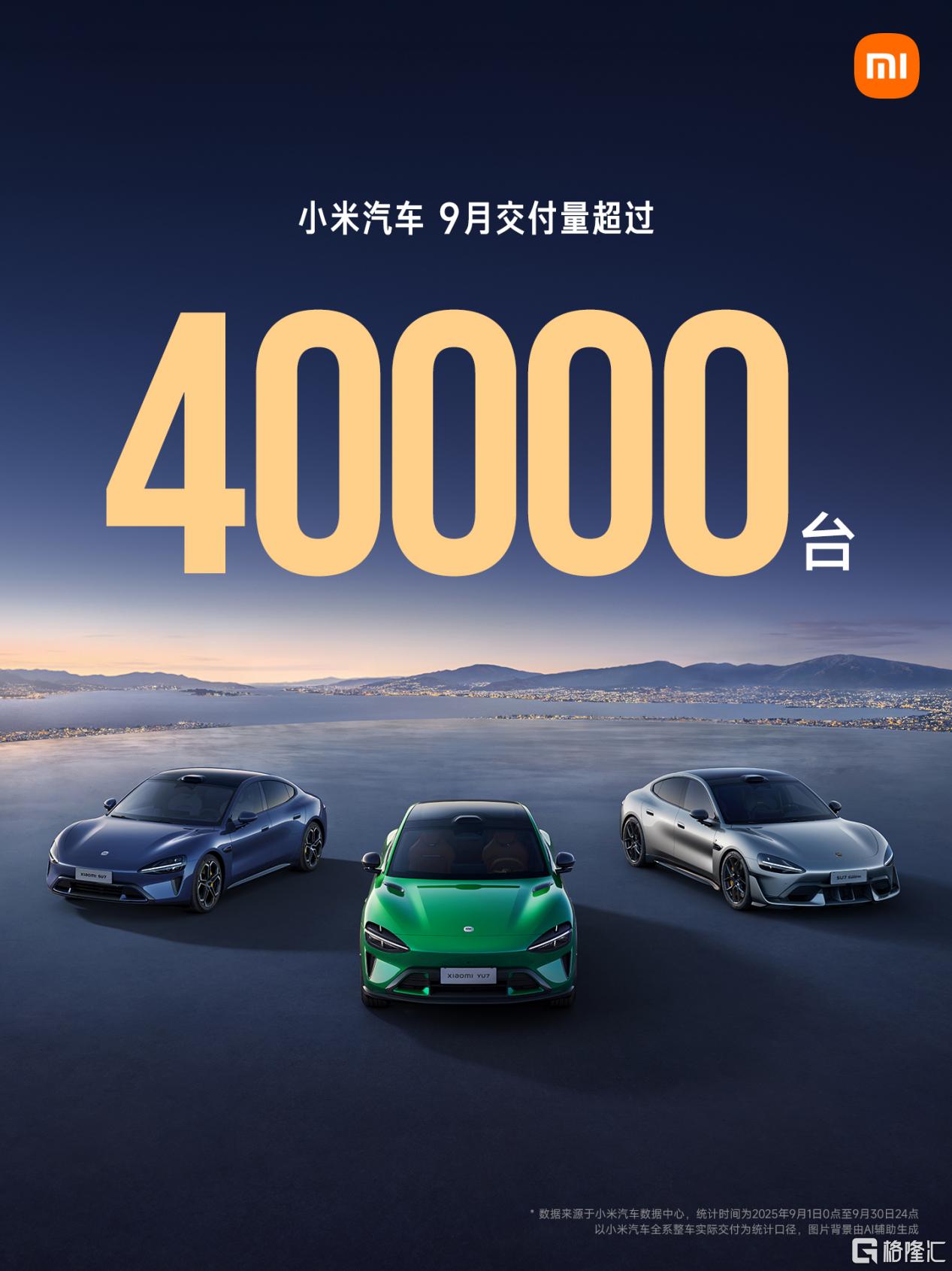 小米汽车10月1日宣布,今年9月交付量超过4万台。