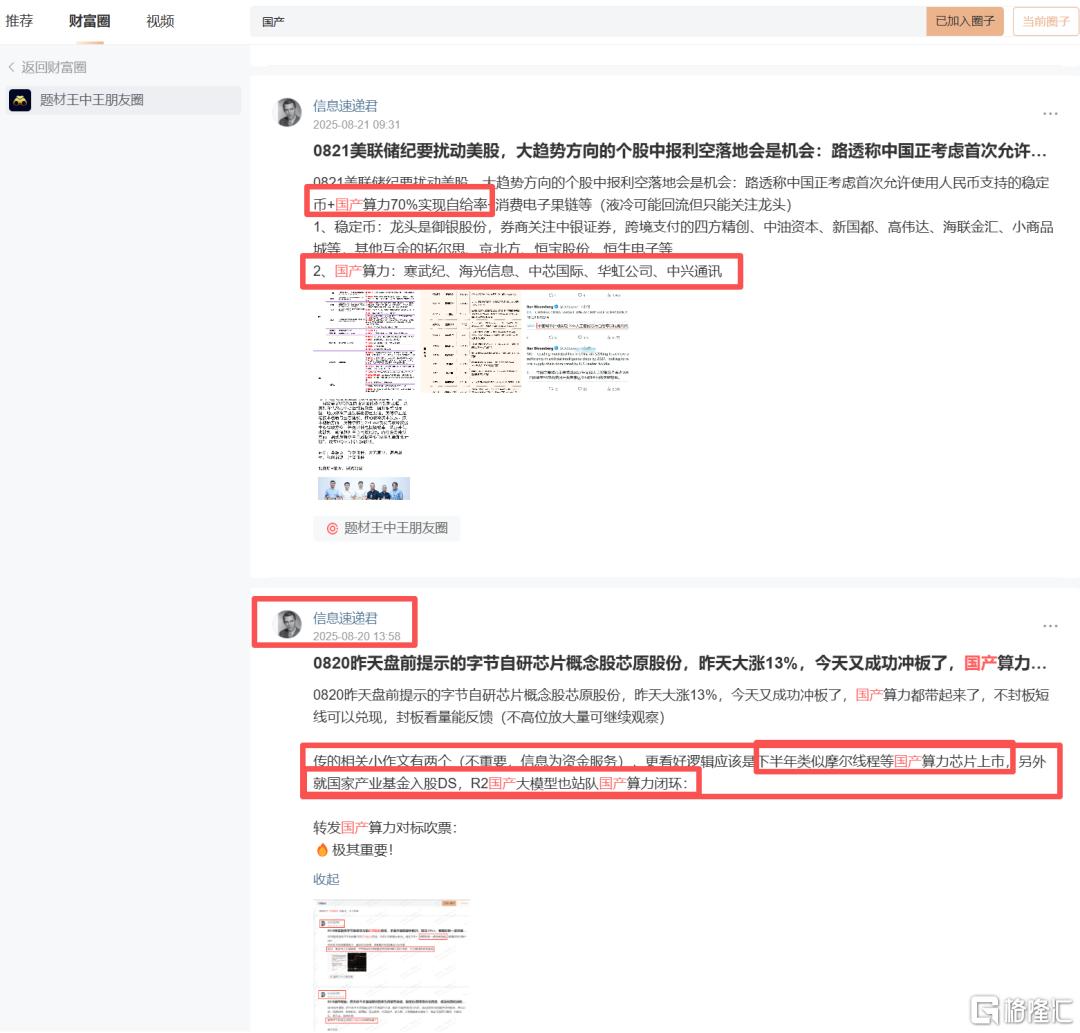 同时8月20日在国产芯片突破加速之时,我们又在财富圈子特地提示了海光信息、中芯国际、华虹等牛股的投资机会,后面整个国产算力板块开始进入主升阶段,收益颇丰。