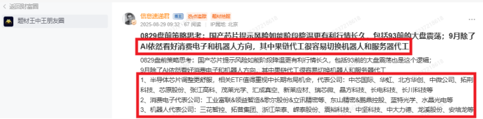 8月中旬我们在市场出现短期调整的背景下,又在公众号文章《别急,牛后劲很足!主抓“科技成长+双创弹性”》明确指出当前市场仍处在牛市中期偏前的位置,拥抱科技成长主线的同时,可以抓住创业板和科创板的双创弹性,并重点列出AI算力硬件、机器人、半导体和消费电子四个重点方向。