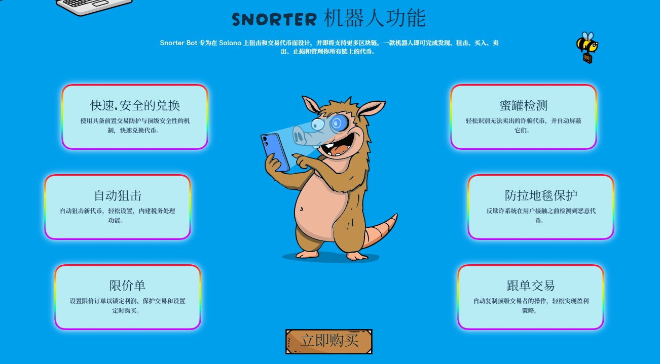 其中一个正在抓住这波需求的项目,就是Snorter Bot Token —— 一款新一代交易机器人,能在海量的迷因币发行中快速筛选,标记出最可能吸引大资金流入的目标,并帮助用户实现“跟巨鲸一样的操作”:提前埋伏,高潮卖飞。