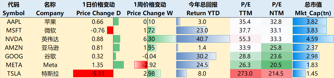 大科技本周也表现出更明显的分化,NVDA在AI FOMO情绪下表现出色创下新高,但META回调超3%。至10月2日收盘,过去一周 $苹果(AAPL)$ +0.1%, $微软(MSFT)$ +1.72%, $英伟达(NVDA)$ +6.3%, $亚马逊(AMZN)$ +1.95%, $谷歌(GOOG)$ $谷歌A(GOOGL)$ -0.04%, $Meta Platforms, Inc.(META)$ -2.92%, $特斯拉(TSLA)$ +2.98%