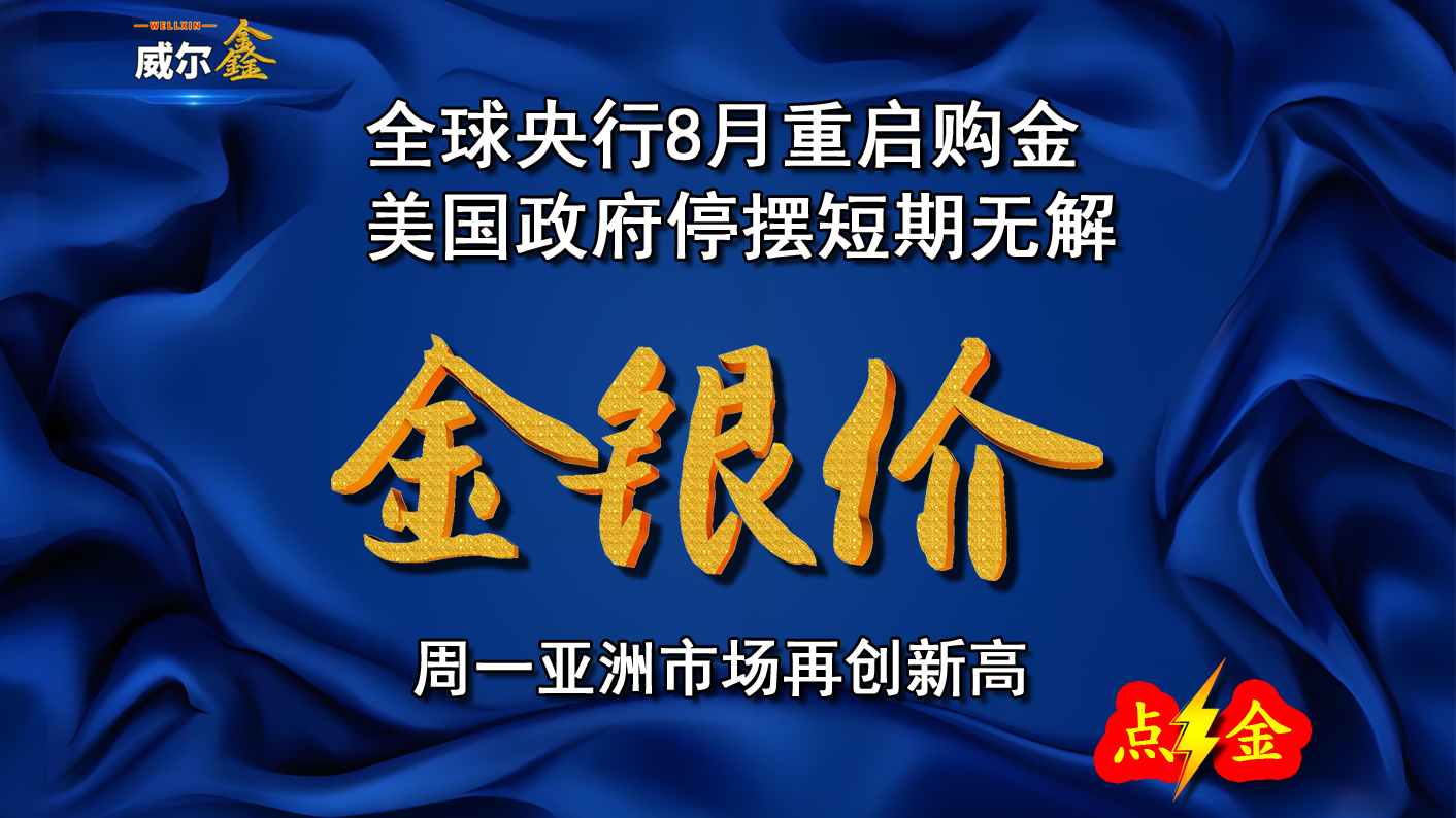 全球央行8月重启购金 美国政府停摆短期无解 金银周一开盘续创新高