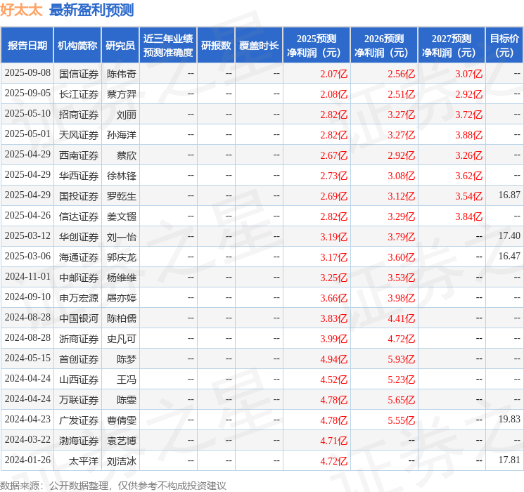 好太太(603848) 公司发布半年报 25Q2营收4亿,同减0.58%,归母净利0.5亿,同减40%,扣非后归母净利0.5亿,同减42%。 25H1公司营收7亿,同减5%,归母净利0.9亿,同减40%,扣非后归母净利0.8亿,同减43%。 2025年上半年,公司紧扣既定战略,有序推进品牌建设、渠道深耕、智造升级、产品迭代及成本优化,多维度巩固运营韧性,整体业务保持稳健。公司以“领先智能家居企业”为愿景,聚焦晾晒核心业务,积极探索智能家居领域其他业务,为消费者提供方便体验全屋智能家居产品。 通过全域整合思路,加速智能家居新品迭代 加强线上直播电商,经销商模式转直营模式等策略,降低对传统经销商模式的依赖,强化终端零售思维。线上渠道,公司持续巩固传统电商渠道,加快突破抖音等新平台,通过合理管控费用预算以及提升运营能力,提升整体推广效率。线下渠道持续推进“开疆焕新”行动,分城分区精准招商,通过高管帮扶、多轮培训等方式赋能终端零售抢占市场,助力头部企业实现市场破局。 推进品牌年轻化,完成多数门店的焕新升级 夯实品牌形象基础;通过抖音经销商矩阵本地化渗透及中央直播间品牌势能引爆,打造抖音全域增长引擎,赋能终端全面获客提效。同时聚焦核心产品,深化并落实产营销协同作战机制,精准触达用户,打造多款爆品。 公司产品聚焦用户场景、行为路径、痛点研究 公司加大了对创新类研发的投入,建立了以用户需求为中心的反馈体系,并通过大数据强化了产品企划能力。公司实现了多项关键技术领域的突破,保持了产品的市场竞争力。围绕“研究一代、储备一代、开发一代”的产品研发思路,公司不断完善基础研究、应用技术研究、产品开发三级研发体系。 调整盈利预测,调整为“增持”评级 基于25H1公司业绩表现,考虑当前家居消费环境及行业竞争情况,我们调整盈利预测,预计25-27年归母净利分别为2.1/2.5/2.9亿元(前值2.8/3.3/3.9亿元),对应PE分别为37X/31X/27X。 风险提示:市场竞争风险;家居消费环境低迷;新品开发不及预期风险等