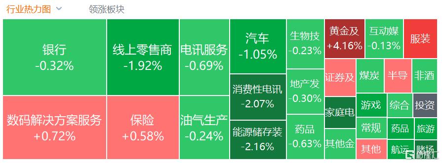 港股收评:三大指数齐跌,恒科指跌1.1%,黄金股逆市大涨