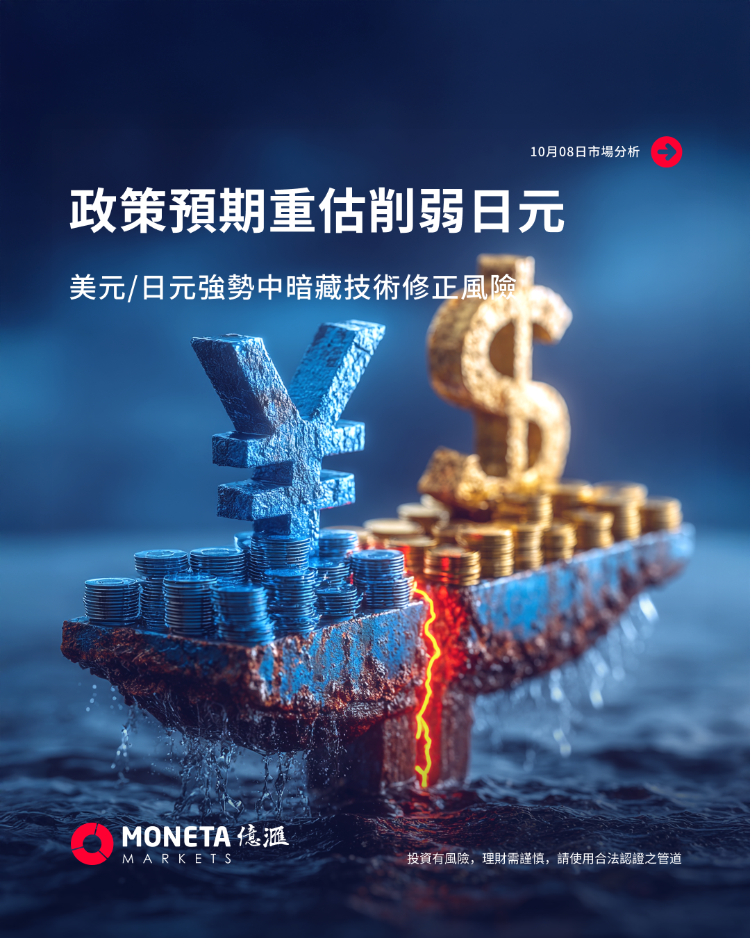 Moneta Markets 億匯10月08日市場分析:政策預期重估削弱日元,美元/日元強勢中暗藏技術修正風險