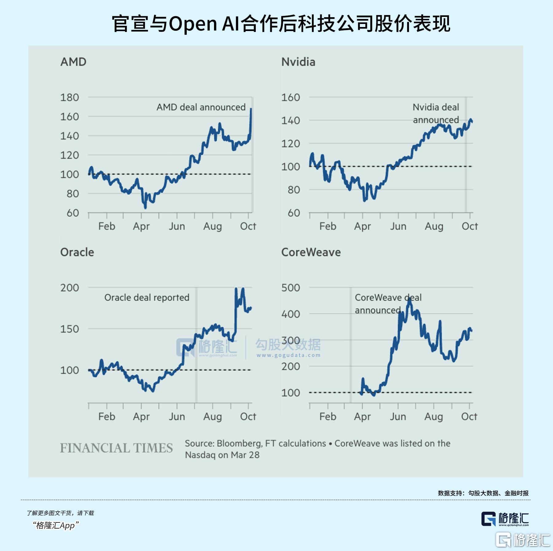 接着,OpenAI又与AMD达成合作,AMD未来要给OpenAI提供数十万块人工智能芯片,我们昨天文章《飙涨23.7%!芯片巨头终于等来“泼天机遇”》里也详细捋过。