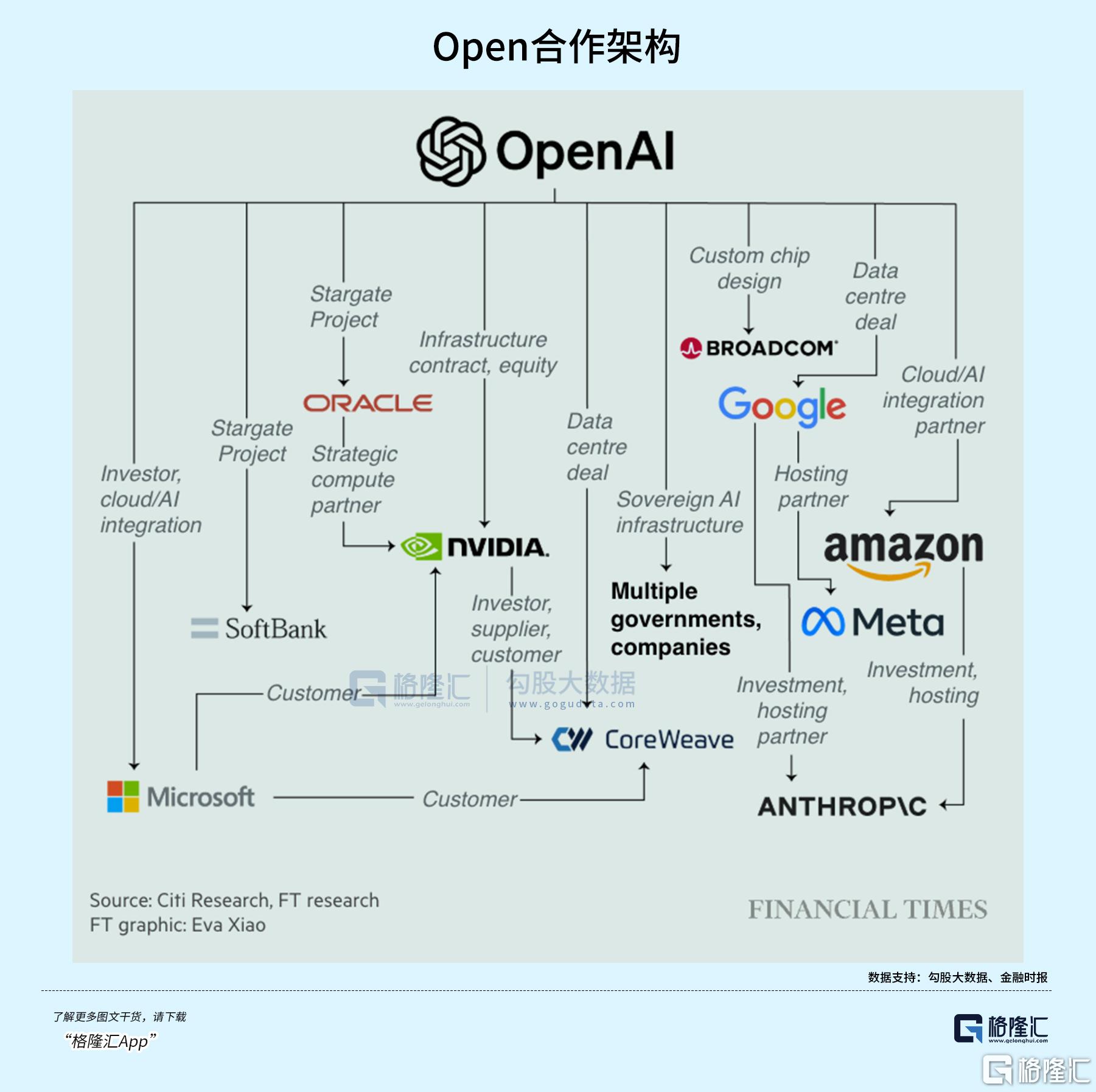 下图关系网表明了OpenAI这艘大船的载重之巨。如果OpenAI倒下了,不仅云计算市场大幅萎缩,GPU也会过剩,最重要的是大家对AI的信心会变得无比脆弱。