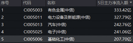 资金面上,基础化工板块近日大举吸金。数据显示,截至发稿,近5个交易日,基础化工板块累计获主力资金净流入额超过200亿元,净流入额在30个中信一级行业中高居第5。