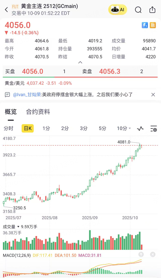 一方面,美国财政赤字持续攀升、债务利息支出创历史新高,美元信用边际减弱;另一方面,地缘政治风险此起彼伏——从中东到欧洲,从日本政坛到美国政府“停摆”,市场对未来的不确定感不断累积。资金开始寻找新的“安全锚”,而黄金,恰好是唯一一种不依赖任何信用的资产。