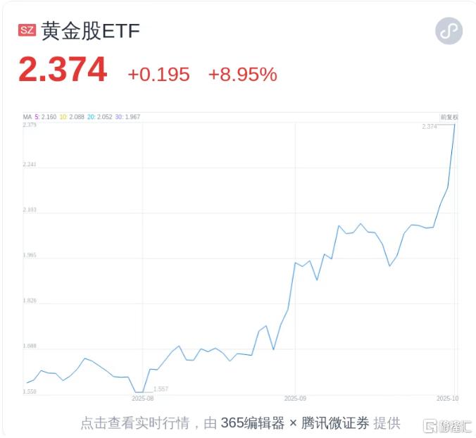 A股10月首个交易日,黄金资产大涨黄金股ETF(159562)大涨8.95%,年内涨103.43%;黄金ETF华夏(518850)涨4.53%,年内涨47.54%。