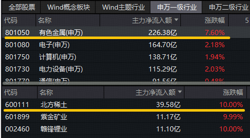 一、【超220亿主力资金爆买,有色领跑市场!有色龙头ETF飙涨8.9%,159876量价齐创新高!北方稀土等16只个股涨停】