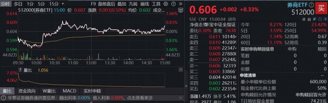 三、【3900点强势突破!关注高确定性“牛市旗手”,顶流券商ETF(512000)放量躁动,53亿“耐心资金”涌入】