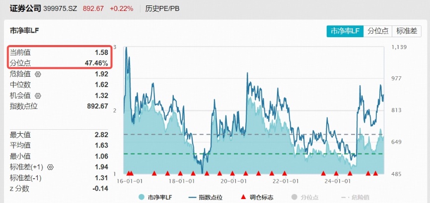 截至最新,券商ETF(512000)跟踪的中证全指证券公司指数市净率PB仅1.58倍,位于10年来47.46%分位点的中低区间,在牛市氛围下估值性价比凸显。