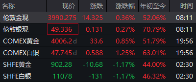 在贵金属市场方面,现货黄金和白银价格出现分化。当地时间10月9日收盘,现货白银价格上涨0.74%,盘中一度突破50美元/盎司,创历史新高;而现货黄金价格则下跌1.60%。分析人士指出,金价上涨的核心驱动因素——美国政府债务问题以及去美元化交易的中长期逻辑仍在,但短期内金价可能步入震荡阶段。