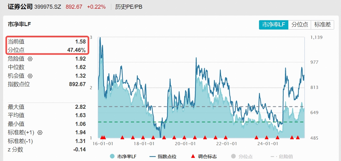 截至10月9日,券商ETF(512000)跟踪的中证全指证券公司指数市净率PB仅1.58,位于10年来47.46%分位点的中低区间,在牛市氛围下估值性价比凸显。