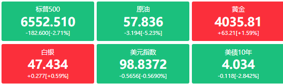 与之形成鲜明对比的是避险资产的走强,现货黄金价格再度站上每盎司 4000 美元关口,日内涨幅超 1%,COMEX 黄金期货涨幅达 1.58%,报 4035.5 美元 / 盎司;美国十年期国债收益率跌近 8 个基点,至 4.034%,资金涌入安全资产的趋势十分明确。