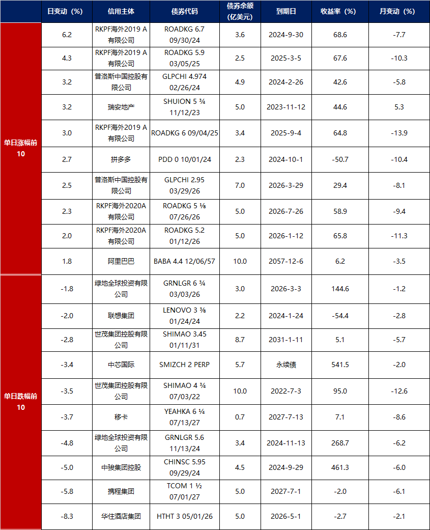 3.中资美元债每日价格变动(截至10月10日收盘)