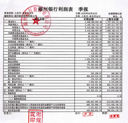 成本与风险管控方面,湖州银行2025年1-9月营业支出15.44亿元,信用减值损失7.41亿元;股东回报能力同步增强,基本每股收益0.58元,较上期末的0.38元大幅提升