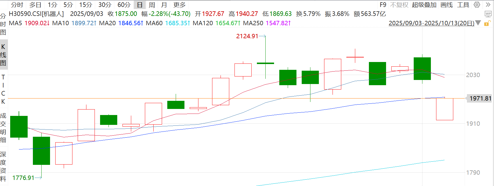 再看技术面,中证机器人指数的韧性也很明显。现在指数还是稳稳的上行趋势,5日、10日、20日均线排得很整齐,典型的多头结构。而且在20日-30日线之间应该还存在支撑,咱们短期内也不必过于恐慌。此外,每次有回调量能都会缩下来,这种“回调缩量、支撑有效”的走势,其实是市场共识的体现:大家都知道这个行业在往好的方向走,短期跌下来反而成了逢低进场的机会。