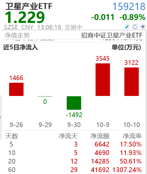 Wind数据显示,卫星产业ETF在10月10日跌幅明显,资金也是净流入3122万元的,这说明资金还是看好卫星产业的。