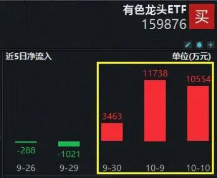 从资金走向看,有色龙头ETF(159876)也很强势,最近3天流入2.57亿。