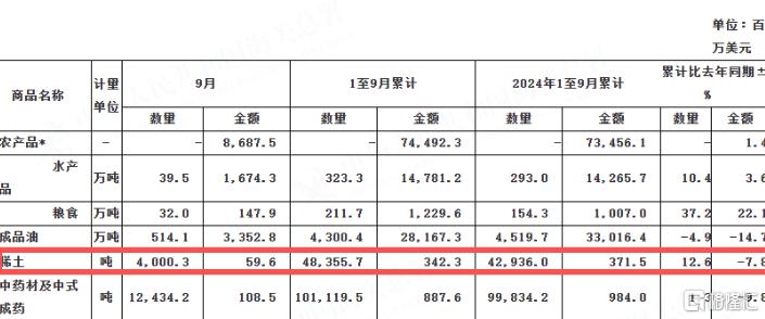 中国1至9月累计稀土出口48355.7吨,去年同期累计出口42936.0吨,同比增长12.6%。