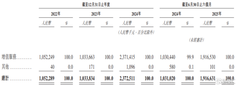 2022年、2023年、2024年、2025年1-6月(简称“报告期”),米连科技的收入几乎全部来自提供增值服务,包括消耗用户代币购买虚拟物品、使用互动功能及会员订阅,而来自在线广告等其他收入的占比很低。