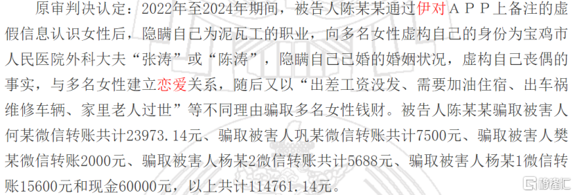 在中国裁判文书网搜索“伊对 恋爱”关键词,共检索到290篇相关文书。梳理发现:既有女性被告人通过伊对APP认识多名男性,以恋爱为名骗取钱财的非法行为;也有男性隐瞒已婚身份,通过伊对APP认识女性,并与多名女性建立恋爱关系,以不同理由骗取女性钱财的案件。