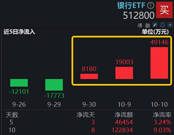 【防御需求再起,银行全天走强,百亿银行ETF(512800)放量3连阳,7.6亿资金密集涌入】