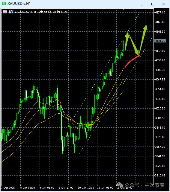 一句话看懂黄金Gold:快速摆脱高位震荡,进入无人区极限拉升,涨势完美延续。