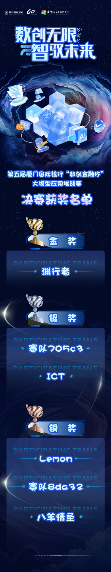 近日,第五届厦门国际银行“数创金融杯”大模型应用挑战赛圆满收官。本次大赛由厦门国际银行与厦门大学数据挖掘研究中心联合主办,“数创金融”联合创新实验室承办。赛事以“大模型在金融领域的应用”为主题,吸引了来自全国知名企业及国内外高校的上千名选手踊跃参与。
