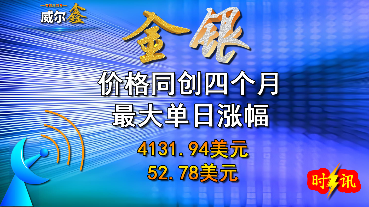 威尔鑫视讯: 金银同创4个月最大单日涨幅 历史新高刷新至4100和52美元上方