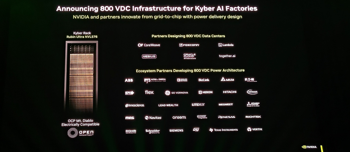 图 2:英伟达 OCP Keynote 中展示 InnoScience 标志的 800 VDC 生态合作伙伴画面