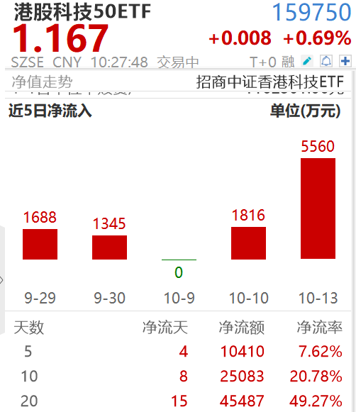而昨天虽然调整,但也有超5500万元资金逆市涌入港股科技50ETF(159750),这种“越跌越买”的现象,通常意味着聪明资金看好中长期表现,正在利用调整低位布局。