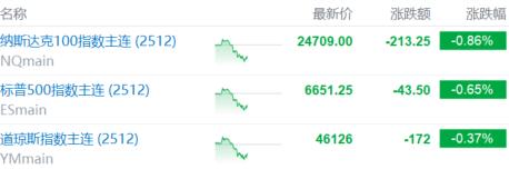 美股期指也全线杀跌,目前纳指期货跌近1%,标普500指数期货跌0.77%,道指期货跌0.54%。