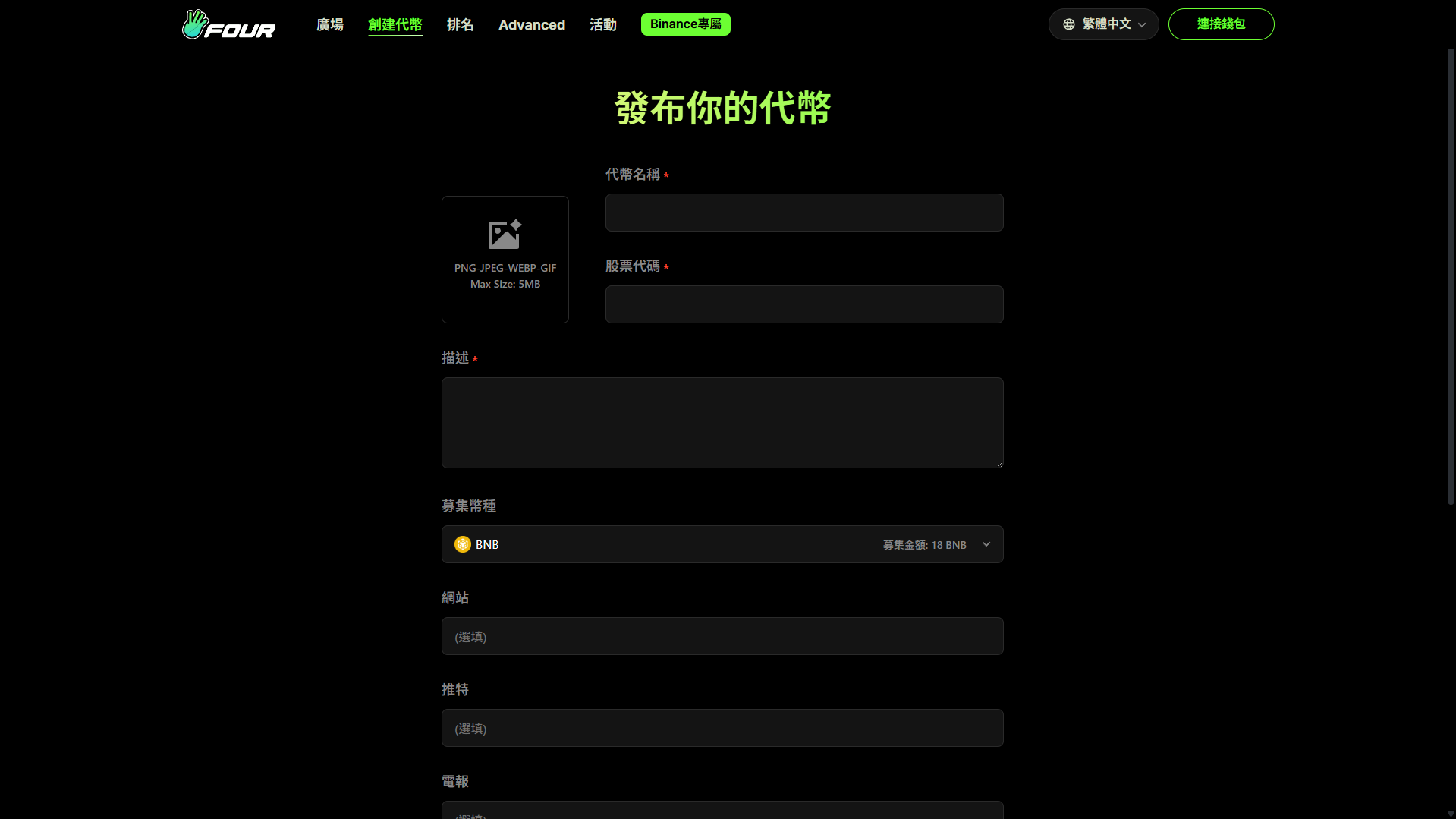 2.填寫代幣資訊:名稱、代號、圖片、簡介與社交連結