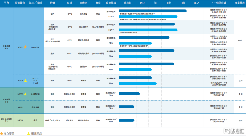 BS006已在美国进入I期临床试验,并成为全球首个进入临床开发阶段的TCE表达的HSV溶瘤病毒。在中国,该管线于2025年8月获得国家药监局的新药临床试验申请(IND)批准。